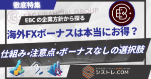 さらに、ボーナスを一切提供しない代わりに取引環境で勝負するEBC Financial Groupの事例を通じて、「ボーナス以外の選び方」も提示します。