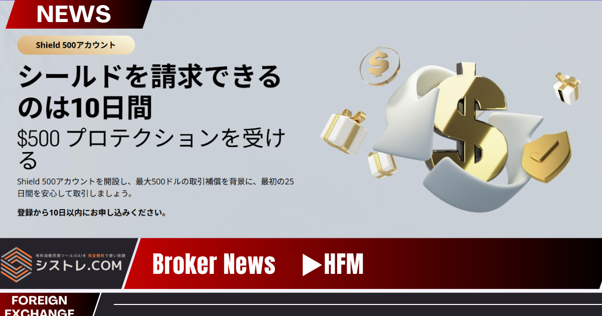 HFMが2025年11月11日より新たなボーナスキャンペーン「Shield 500 ボーナス」の提供を開始しました。初回入金者を対象に、最大500ドルのボーナス資金を提供するこのキャンペーンは、取引開始初期の損失リスクを軽減する仕組みとなっています。