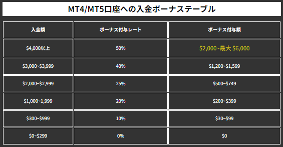 - 口座開設ボーナス:入金不要で取引資金が付与
