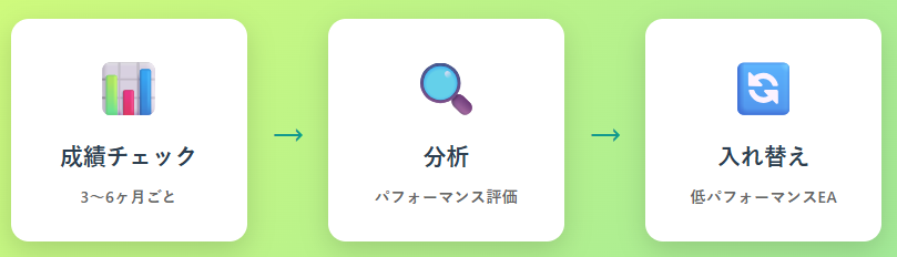 - 特定のEAのパフォーマンスが著しく低下した場合は入れ替えを検討