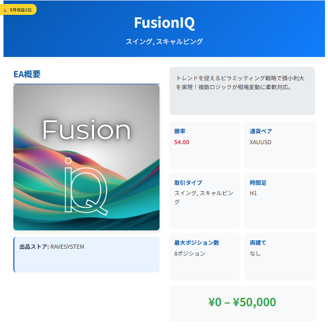 【2025年10月スイングEA1位】FusionIQ