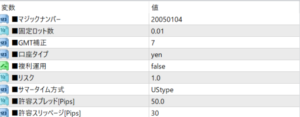 • GMT_hosei: GMT補正値。サーバーの時間調整に使用されます。(例:XMはGMT2業者なので補正は7)