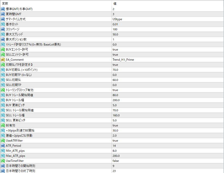 Trend_H1_Prime は、H1チャートを基軸に相場の大きな流れをつかまえることを目的としたスイングEAです。